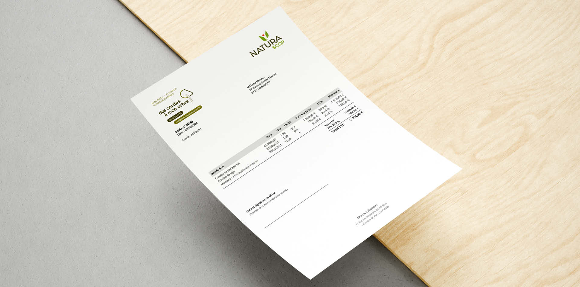 Notre agence est fière d'avoir accompagné Cyril dans la réalisation de son identité visuelle. Nous avons conçu son logo, ses cartes de visite, sa signature de mail, sa landing page, son aimant de véhicule ainsi que ses entêtes de lettre pour réaliser ses devis/factures.