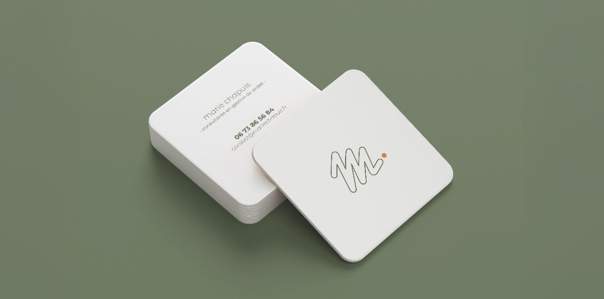 La typographie Montserrat, simple, moderne et lisible, à l'image de Marie et de son professionnalisme, mais aussi toute en minuscule pour souligner sa proximité dans son approche.
