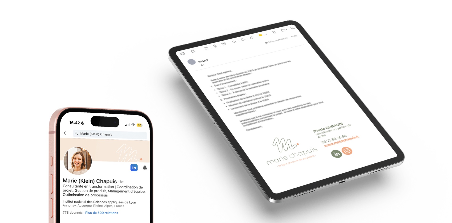 Son accompagnement se divise en deux axes principaux. Un accompagnement méthodologique, où Marie aide à clarifier les processus, à choisir des outils simples et efficaces et à fluidifier l’organisation des équipes. L’objectif ? Permettre aux entreprises de gagner en autonomie et en efficacité au quotidien. Et une gestion de projet opérationnelle où Marie prend en charge un projet de A à Z, s’intégrant aux équipes et outils en place tout en apportant un regard extérieur pour optimiser les pratiques et garantir une mise en œuvre réussie.